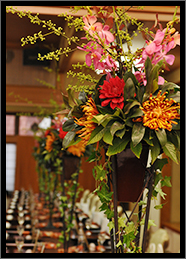 [1] 天井が高い会場が寂しくならないように背が高い花器を使用しました。